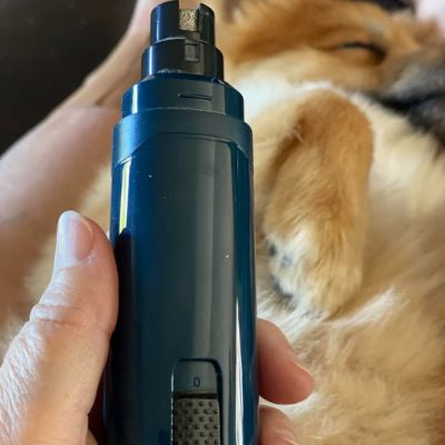Three port sizes: small, medium, and large, so it fits every breed from puppies to the biggest dogs in your house. Two speeds: 7000 RPM to train and acclimate, 8000 RPM to finish thick nails fast. Start gentle. Finish strong. One grinder that grows with your dog's tolerance.
