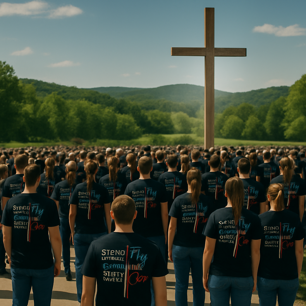 This shirt showcases a striking cross design styled with the American flag, paired with the inspiring message “Stand for the Flag, Kneel for the Cross.” It’s a bold way to proudly express both faith and patriotism.